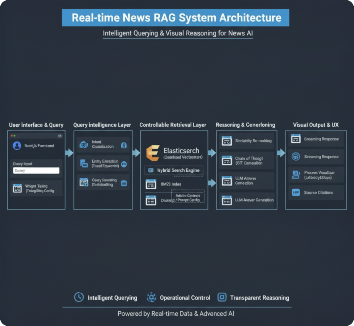- Hybrid Indexing: **BM25(키워드 검색)**와 **Vector(의미 검색)**를 결합하여, 고유 명사가 많은 뉴스 데이터의 특성에 최적화된 하이브리드 검색 기반을 마련했습니다.